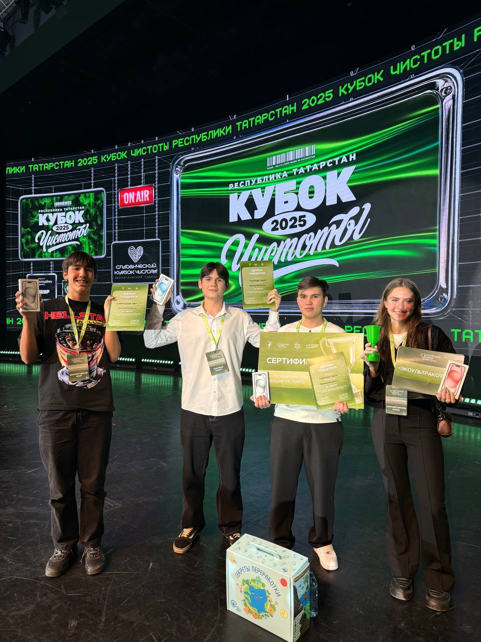 Гимназия №33 г. Казани → Достижения учащихсяШкольный Кубок Чистоты9 ноября ученики 10 И класса нашей гимназии приняли участие в заключительном этапе "Школьного Кубка Чистоты".Команда в составе которой были Мифтяков Эльдар, Шарафутдинов Амир, Шарафетдинова Арина и Зайнуллин Адель успешно прошли 3 этапа: 1. Чистые игры, где они собирали и сортировали мусор в лесу. 2. Онлайн-марафон, в течение которого выполняли множество различных заданий. 3. Квиз по теме экологии, на котором набрали наибольшее количество баллов. Несмотря на то, что участие они принимали в первый раз, нашим ученикам удалось заслужить 1 место среди школьников Татарстана! В качестве подарка, каждый игрок команды получил главный приз - IPhone 15 и посещение сортировочного центра УК ПЖКХ. Благодаря ребятам наша гимназия вновь вернула почетное звание победителей Кубка Чистоты! Поздравляем! Просмотров страницы: 13