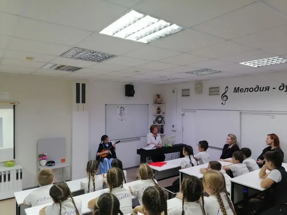 Гимназия №33 г. Казани → Новости классовМузыкальное путешествие в мир Салиха Сайдашева22 декабря в 3 Б классе прошло мероприятие в рамках курса "Казановедение". Урок музыки провели учитель Ханзярова Флера Рифовна и наша гостья Шамсутдинова Венера Рифовна, кандидат педагогических наук, историк музыки и искусства.Занятие было посвящено творчеству великого татарского композитора - Салиха Замалетдиновича Сайдашева. Венера Рифовна рассказала ученикам о жизни и творчестве композитора. На мероприятие были приглашены учителя и родители 3 Б класса. На уроке прозвучали народные татарские и русские песни. Ученица 3 Б класса Шамсутдинова Дильбар исполнила пьесу на домре, спела песни Салиха Сайдашева. Урок завершился исполнением «Песни о дружбе» Салиха Сайдашева на стихи Мусы Джалиля. Просмотров страницы: 7