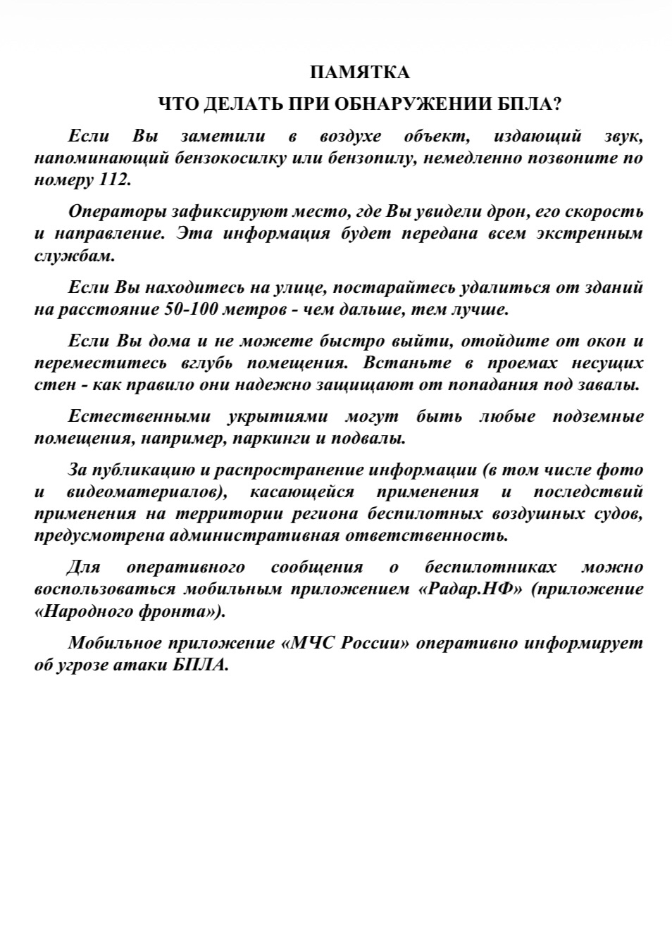 Гимназия №33 г. Казани → Срочные объявленияПамятка населению при обнаружении БПЛАПамятка в прикрепленном файлеПросмотров страницы: 9
