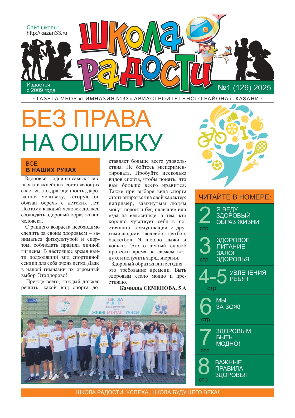 Гимназия №33 г. Казани → Деятельность гимназии → Медиацентр гимназииСпецвыпуск газеты "Школа радости"Тема номера: "Без права на ошибку"