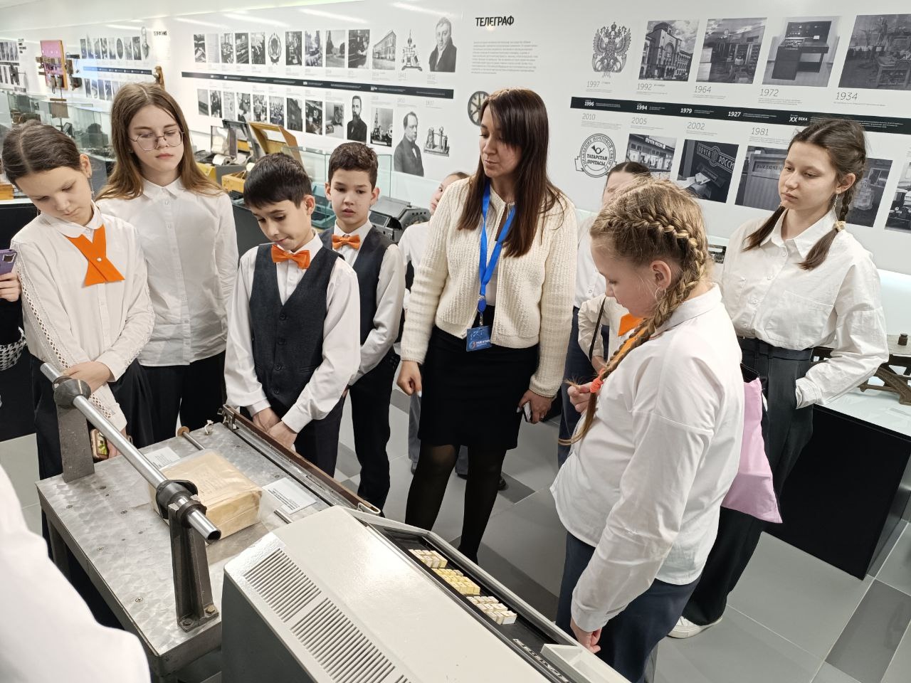 Гимназия №33 г. Казани → Деятельность гимназии → Медиацентр гимназииЭкскурсия в музей истории связи РТРебята из кружка "Юный журналист" (руководитель - Файзуллина Л.Ф.) побывали на экскурсии в музее истории связи РТ, который находится в Казанском техникуме информационных технологий и связи.В первом зале музея представлены материалы, рассказывающие о развитии почтовой, телеграфной, телефонной связи в разные годы. Второй зал посвящен развитию радиосвязи, телевидения и современных средств связи. Директор музея Шарифьянова Раиса Разимовна рассказала об интересных фактах и некоторых экспонатах музея. Ребятам дали возможность послушать музыку на патефоне и даже позвонить по старинному телефонному аппарату. Экскурсия была очень интересной для юных журналистов. Просмотров страницы: 11
