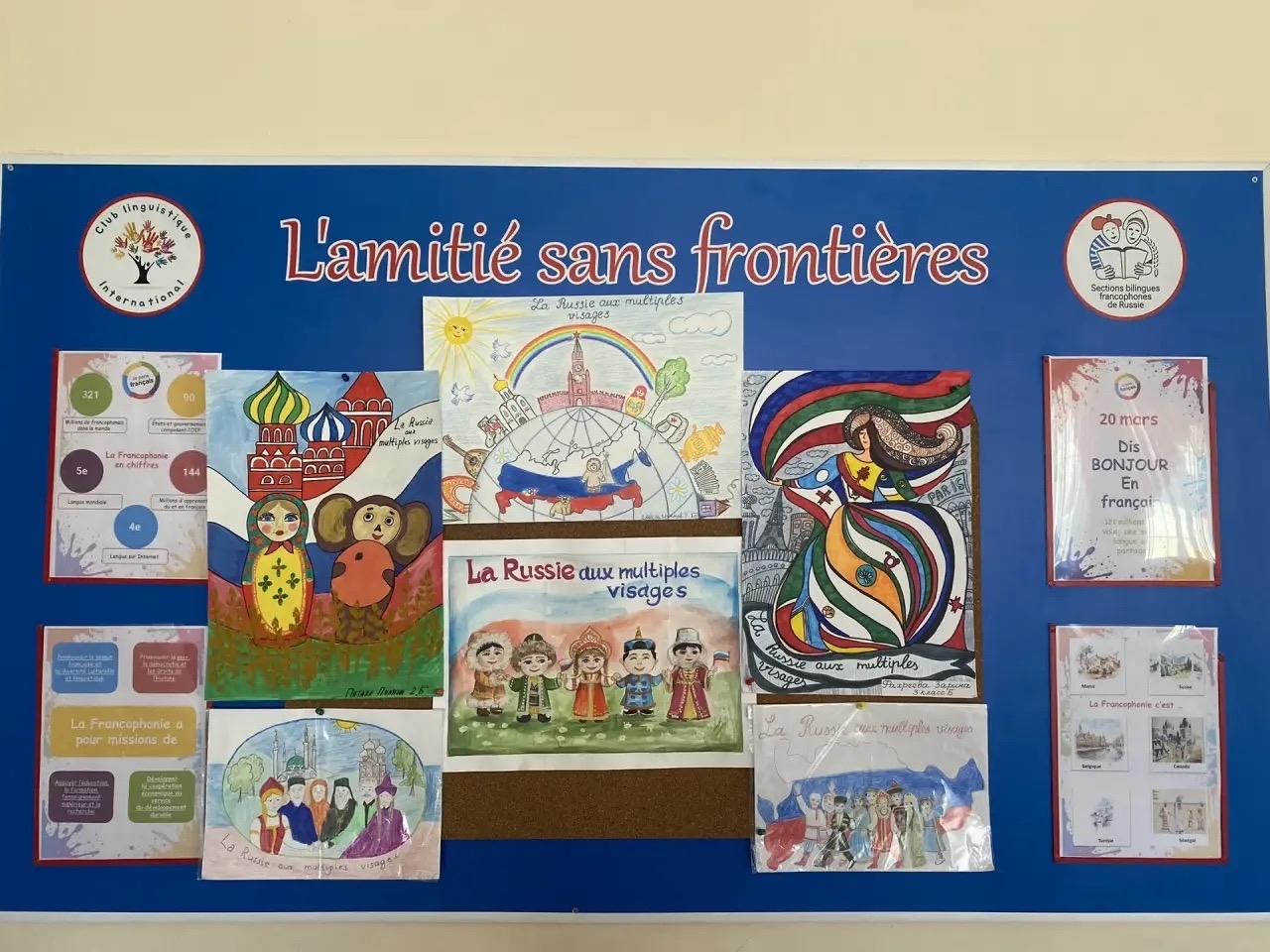 Гимназия №33 г. Казани → Новости классовКонкурс рисунков «La Russie aux multiples visages»На протяжении недели франкофонии наши юные билингвалы погрузились в творчество и приняли участие в конкурсе рисунков «La Russie aux multiples visages» («Многоликая Россия»). Ребята подошли к заданию с душой. Все работы украсили стенды, создав настоящую галерею детских талантов.Победители: Гарафиева Альмира (4Б), Фатыхова Камилла (2Б). Призёры: 1Б класс: Гилазиева Камила, Дедова Агата, Смольянинова Дарья, Чураева Иллалия. 2Б класс: Ахмадуллина Ясмина, Исмоилова Риана, Пятаха Полина, Сафин Тимур, Стрельников Радмир. 3Б класс: Гаптраванов Раиль, Фахреева Зарина, Смольянинов Георгий. 4Б класс: Буранова Амалия, Шершем Александр-Раян. Поздравляем победителей и призёров! Благодарим всех участников за активность, яркие идеи и проявленную любовь к творчеству. Просмотров страницы: 4