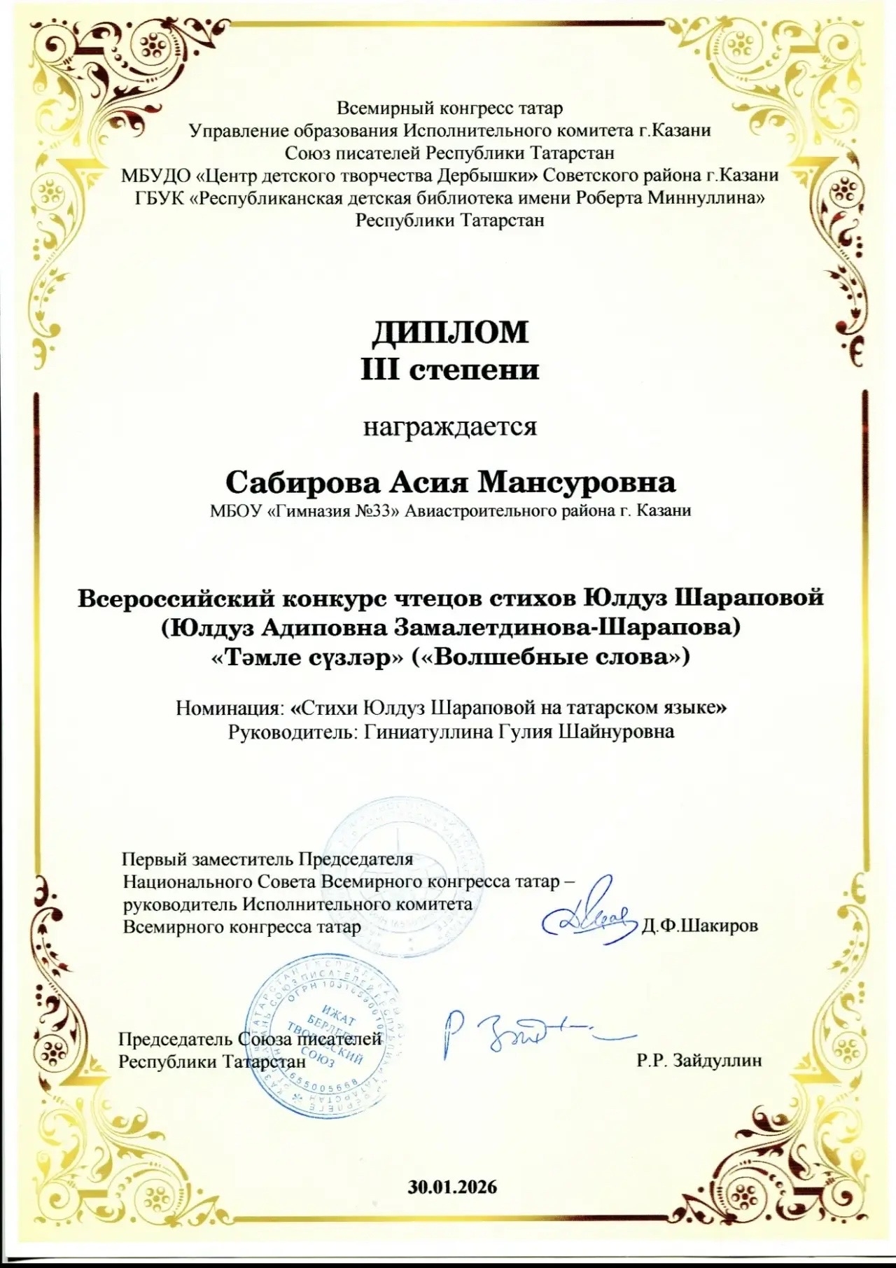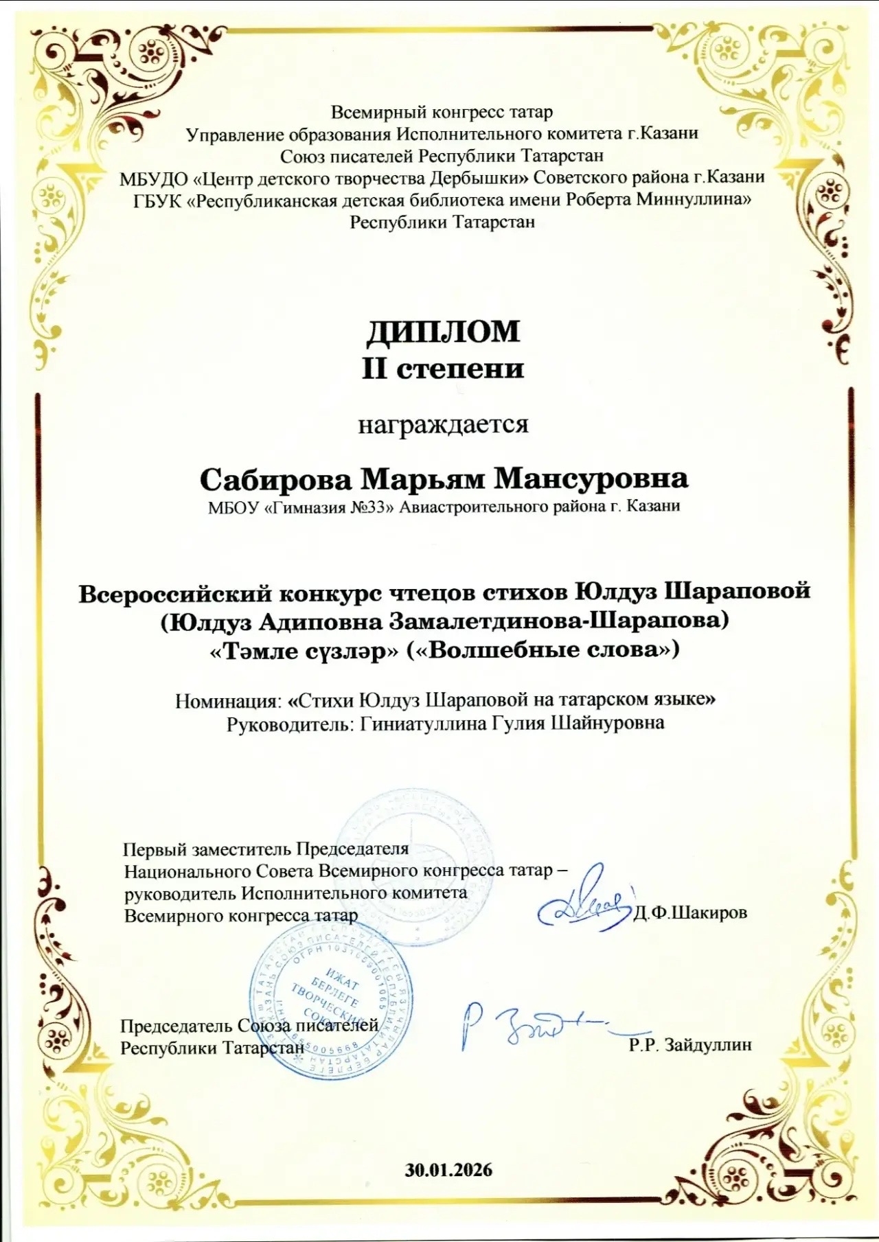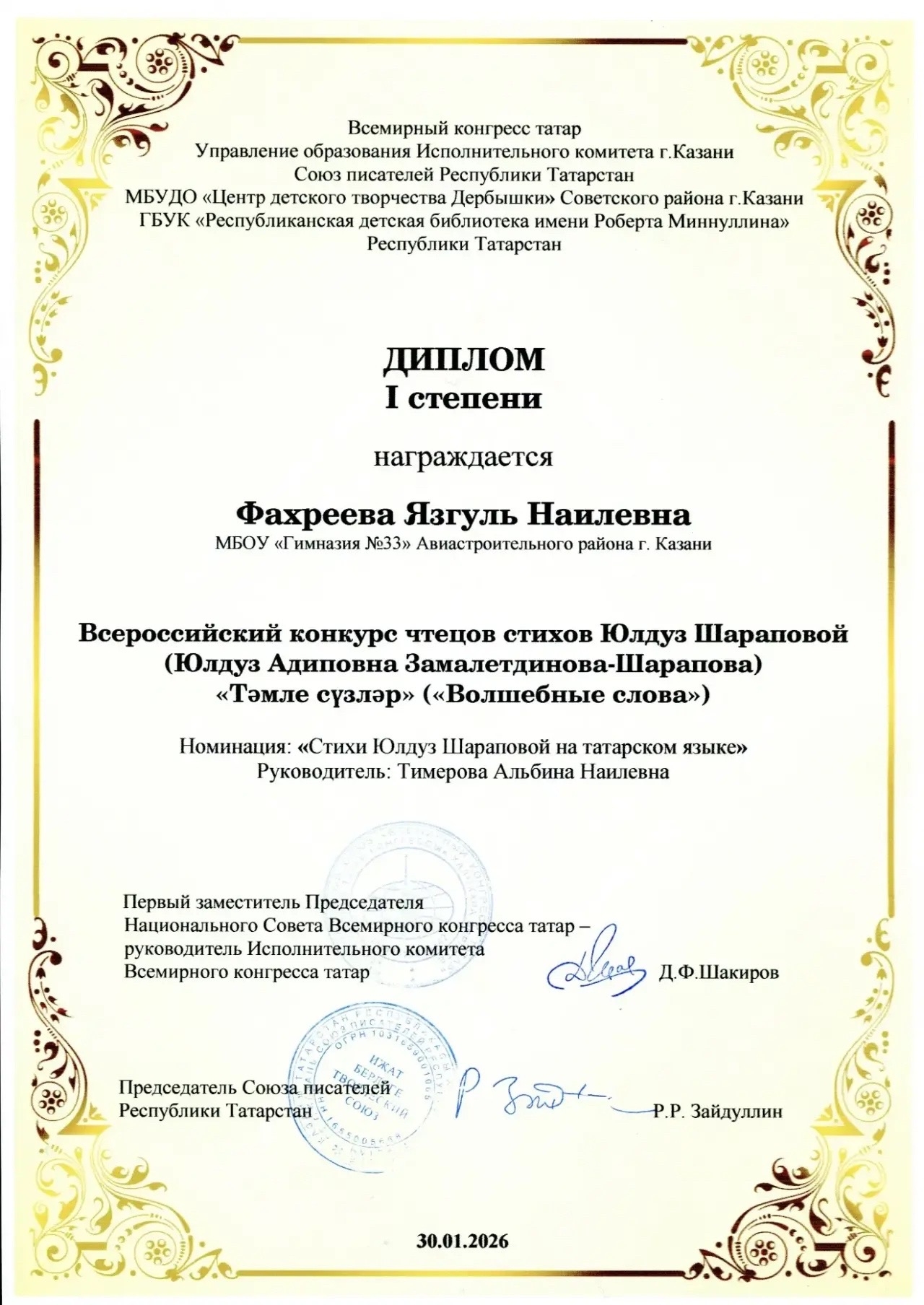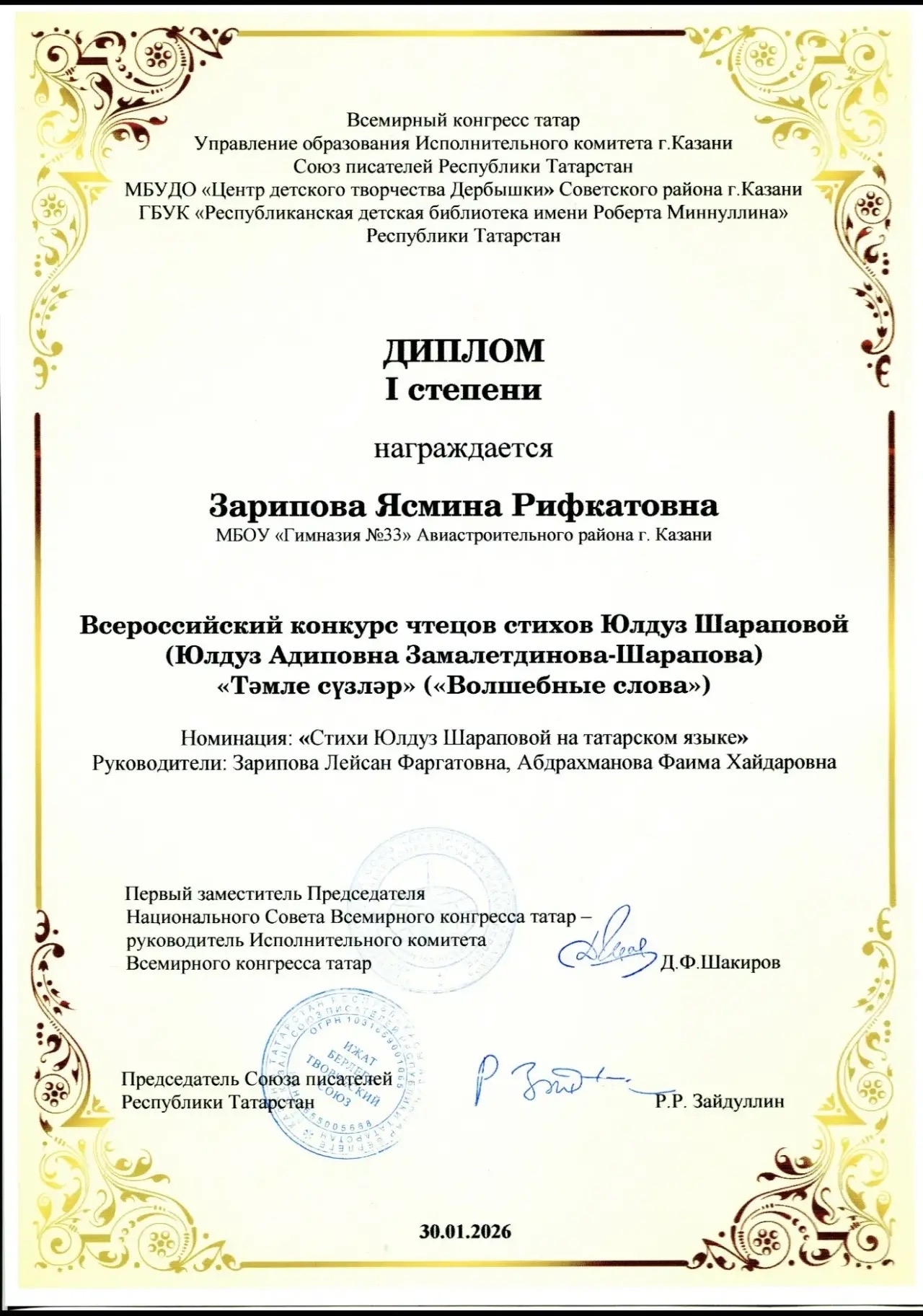 Наши учащиеся приняли участие во Всероссийском конкурсе чтецов стихотворений Юлдуз Шараповой «Тәмле сүзләр» («Волшебные слова») и добились блестящих результатов: