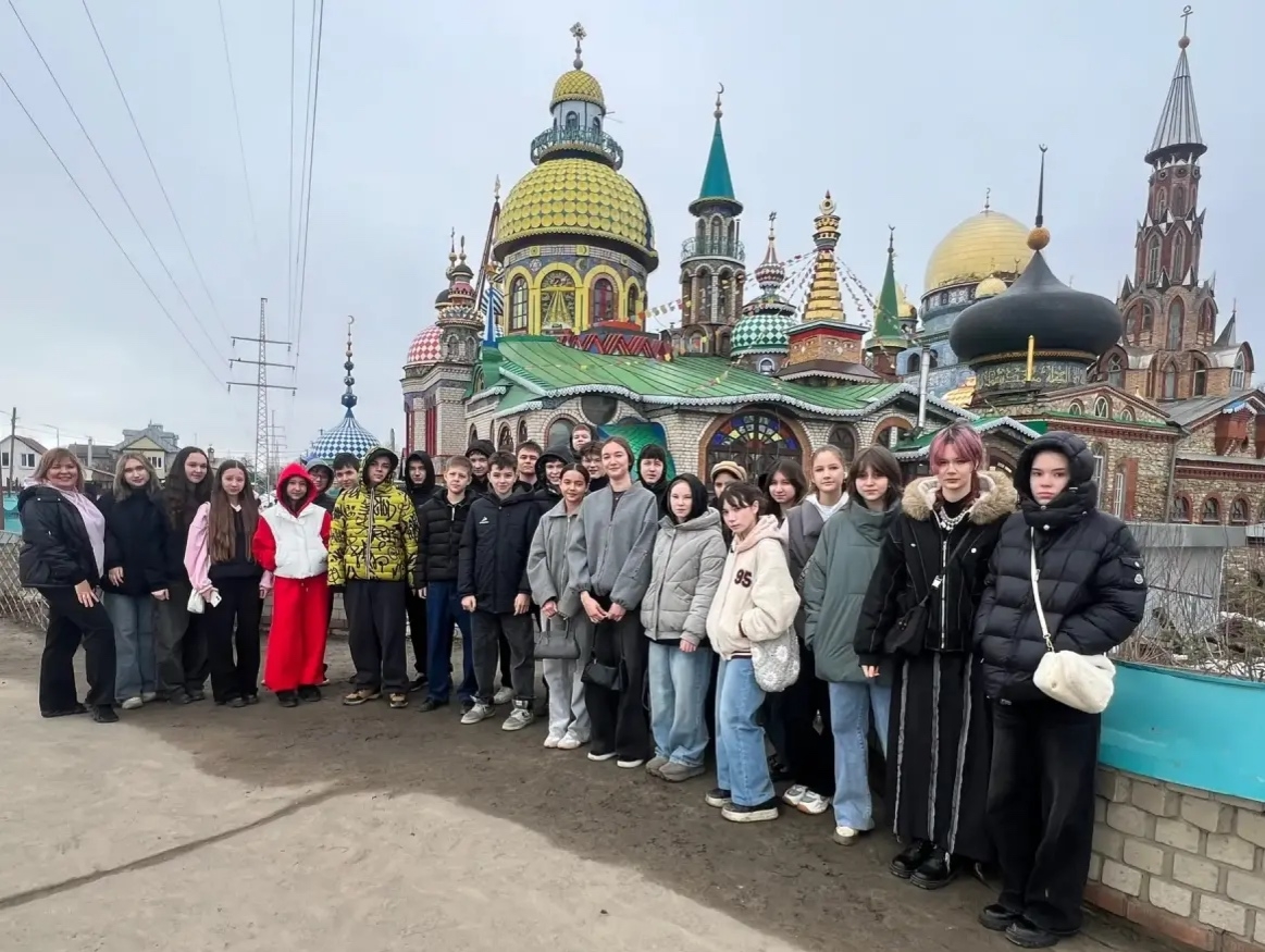 Ребята узнали, что этот архитектурный проект был начат в 1993 году художником Ильдаром Хановым как символ единства и взаимопонимания между представителями разных вероисповеданий и культур. Школьники посетили все залы, каждый из которых отличается уникальным оформлением и особой атмосферой. Они познакомились с архитектурными элементами православного храма, мусульманской мечети, буддийской пагоды, а также других религиозных традиций.